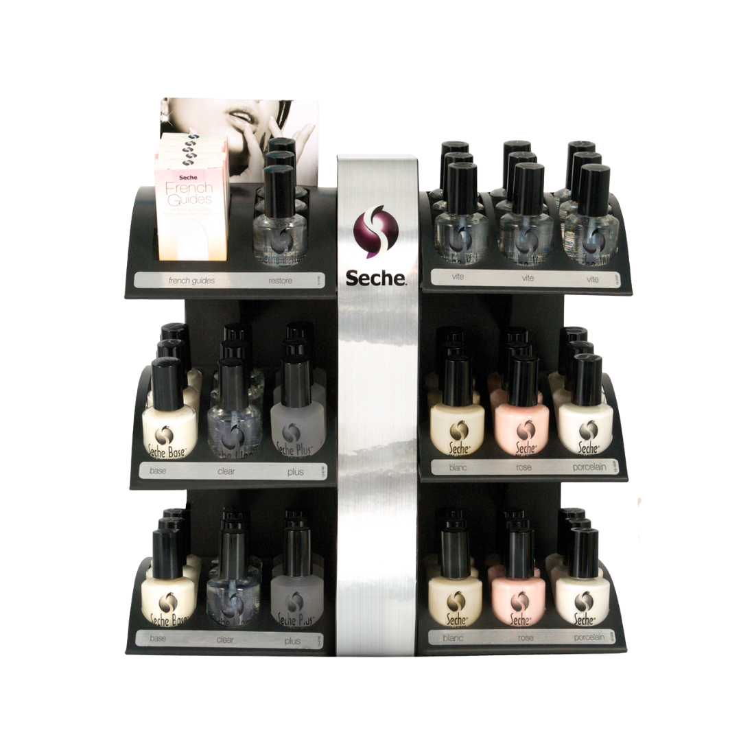 Showcase your Seche collection with this durable black plastic display—designed to organize, impress, and boost your retail performance.